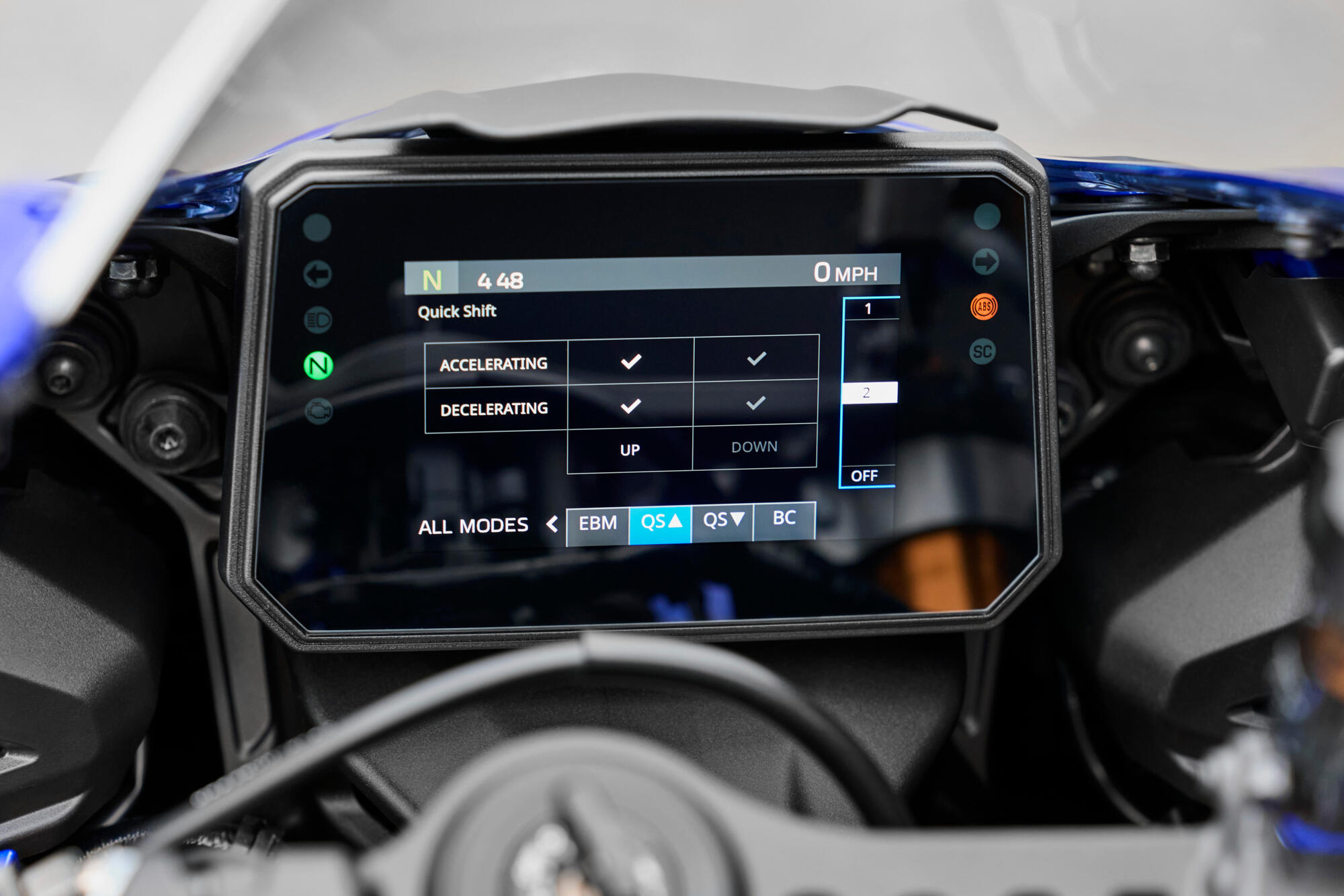 Systémy Traction Control, Slide Control a Brake Control, které jsou citlivé na náklon, nepřetržitě sledují pohyb a přilnavost a hladce spolupracují s šestiosou IMU odvozenou z modelu R1. Každý systém zasahuje jemně a předvídatelně, čímž zvyšuje stabilitu a umožňuje jezdci s naprostou jistotou překonávat své limity na silnici i na závodní trati.