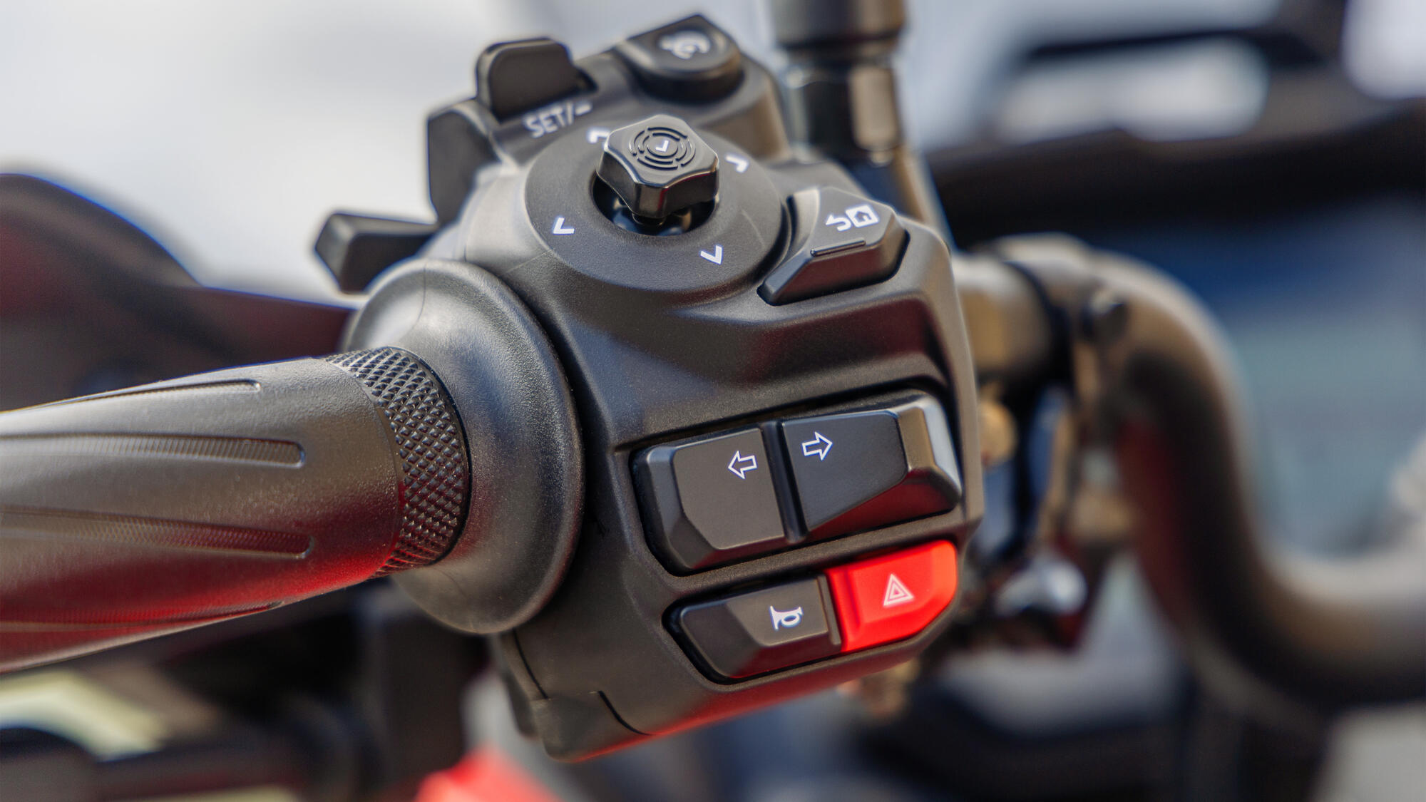 Nové ergonomické přepínače umožňují intuitivní a snadné ovládání funkcí modelu TRACER 7, včetně funkcí připojení chytrého telefonu, nastavení systému Yamaha Ride Control a tempomatu. Nové ukazatele směru s automatickým vypnutím nyní nabízejí funkci trojitého bliknutí při změně jízdního pruhu a funkci nouzových světel, která varují ostatní účastníky silničního provozu při nouzovém zastavení.