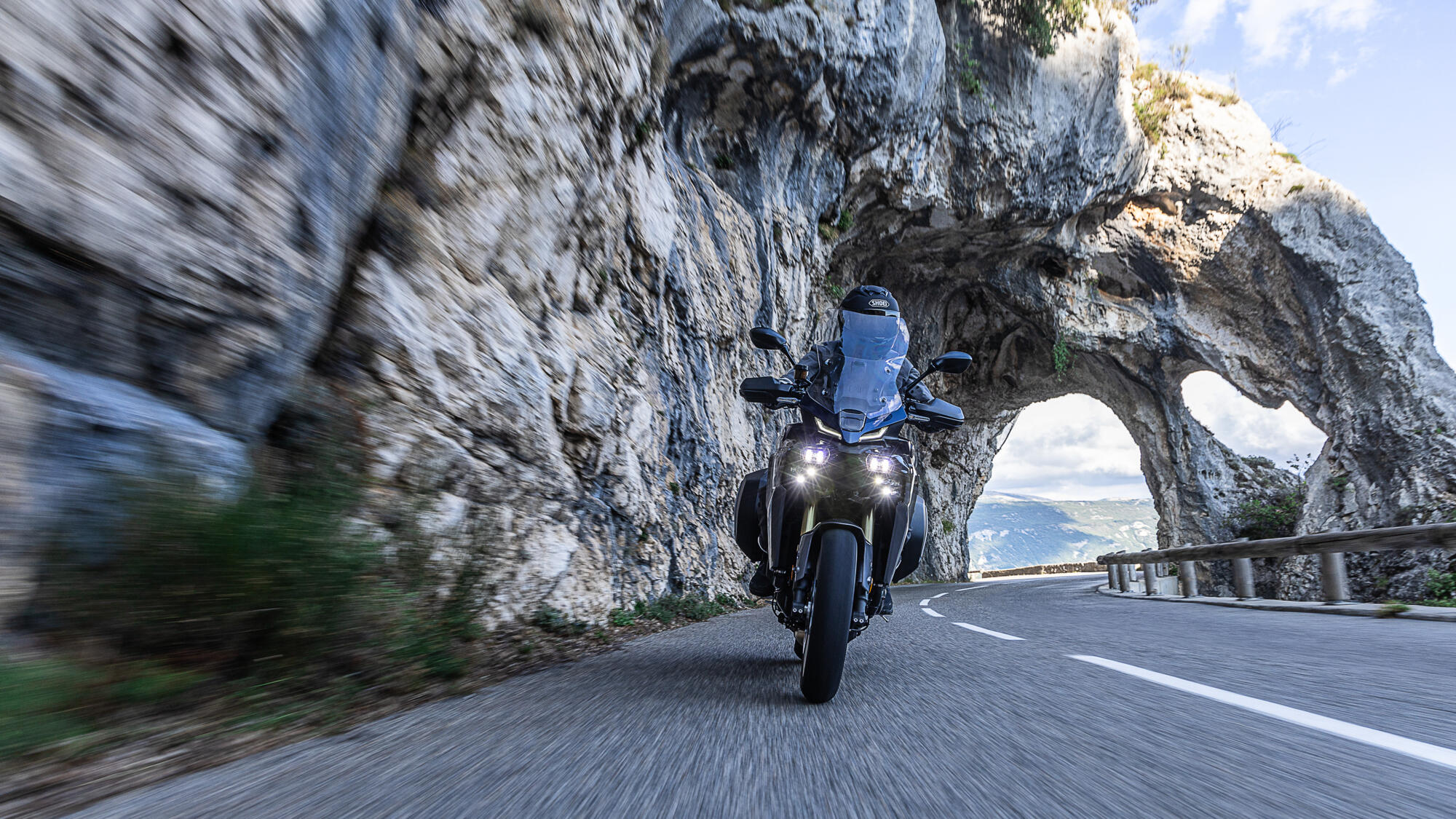 TRACER 9 GT+ poskytuje lepší ochranu proti větru díky přepracované přední kapotáži a čelnímu sklu. Nové uspořádání vyvinuté v aerodynamickém tunelu snižuje turbulence, aby jezdec i spolujezdec dorazili do cíle svěžejší než kdykoli dříve. Elektronicky ovládaný čelní štít nyní navíc umožňuje libovolné nastavení v celém rozsahu 100 mm, a proto si jezdec může vyladit aerodynamiku přesně podle svých preferencí.
