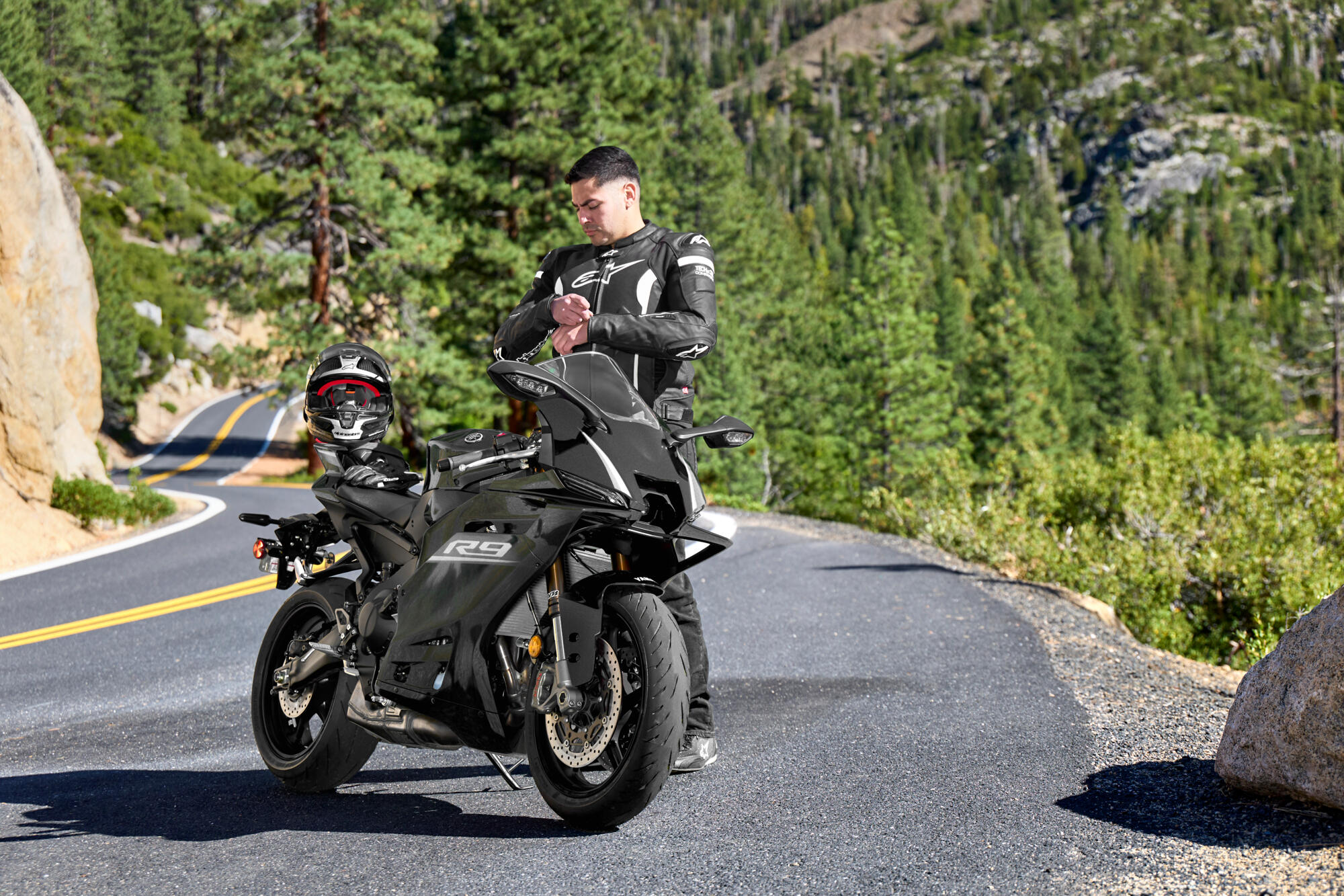 Plnobarevný 5″ TFT displej modelu R9 lze přizpůsobit čtyřem volitelným motivům, zatímco režim Track zobrazuje informace důležité pouze při jízdě na závodní trati, včetně časovače kol. Displej lze propojit s chytrým telefonem prostřednictvím aplikace Yamaha MyRide, která umožňuje zobrazovat telefonní hovory, zprávy a další informace na palubní desce.