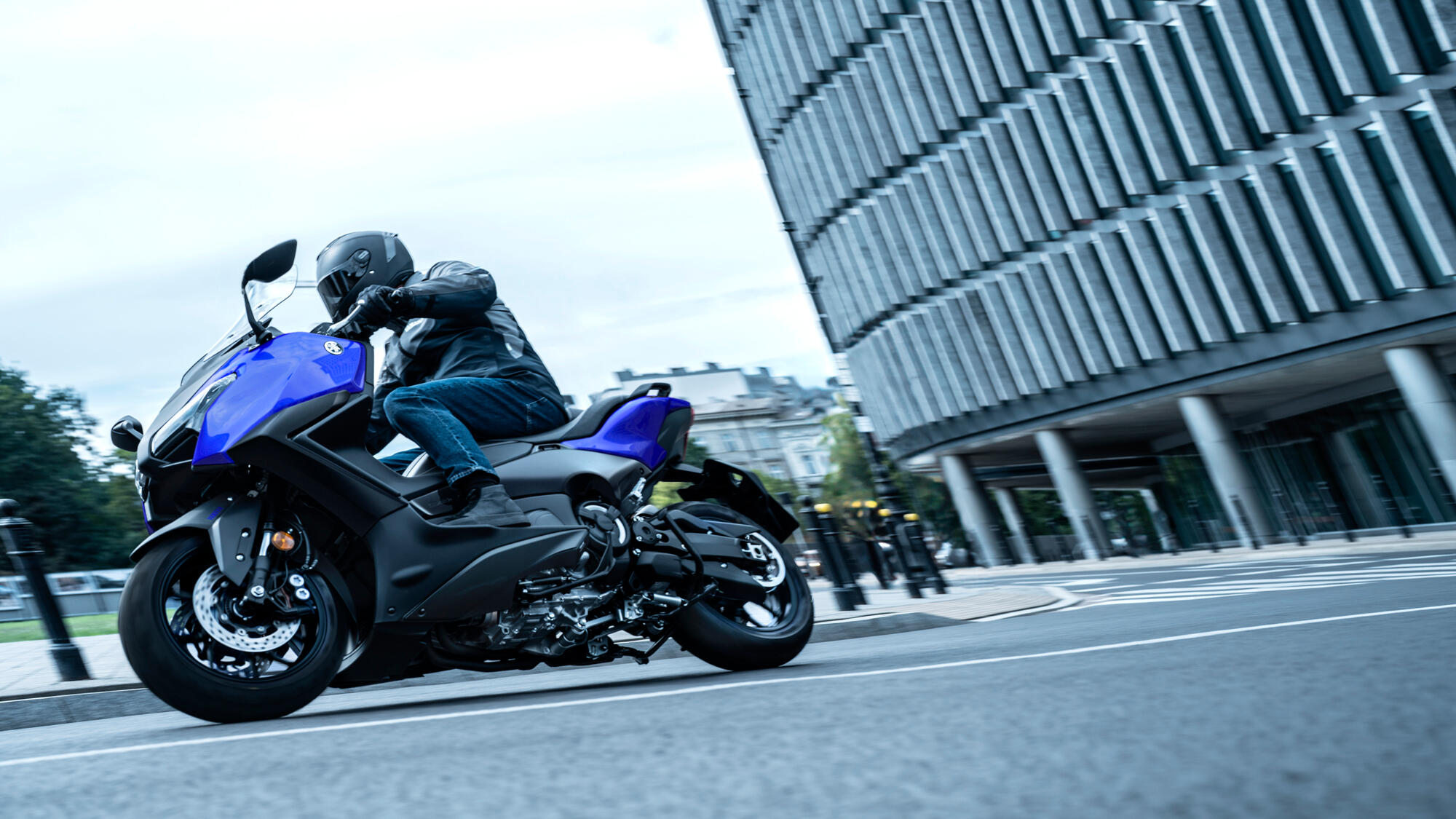 TMAX je sportovní skútr navržený pro celoroční používání na vozovkách s různým povrchem a v náročných povětrnostních podmínkách, a je tedy opravdu společníkem pro každodenní jízdu. Jeho dvoustupňový režim D-MODE umožňuje zvolit plynulejší průběh výkonu ve městě – a na dálnici můžete přepnout na sportovnější charakter motoru. Jistotu při jízdě zvyšuje systém Traction Control, který pomáhá zabránit prokluzu kol na sypkém nebo mokrém povrchu.