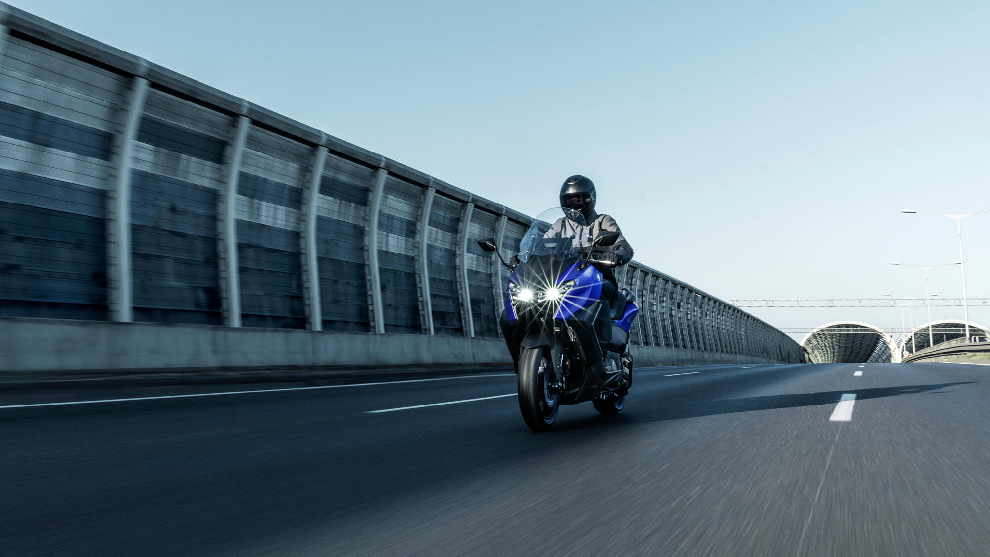 TMAX se neustále vyvíjí a nejnovější generace tohoto kultovního stroje se vyznačuje ostrou přední částí, která podtrhuje jeho dynamický vzhled. Uhrančivé dvouoké světlomety a obrysová světla spolu s přední kapotáží dodávají tomuto legendárnímu modelu kompaktní a sportovní vzhled a upevňují jeho status špičkového víceúčelového sportovního skútru.