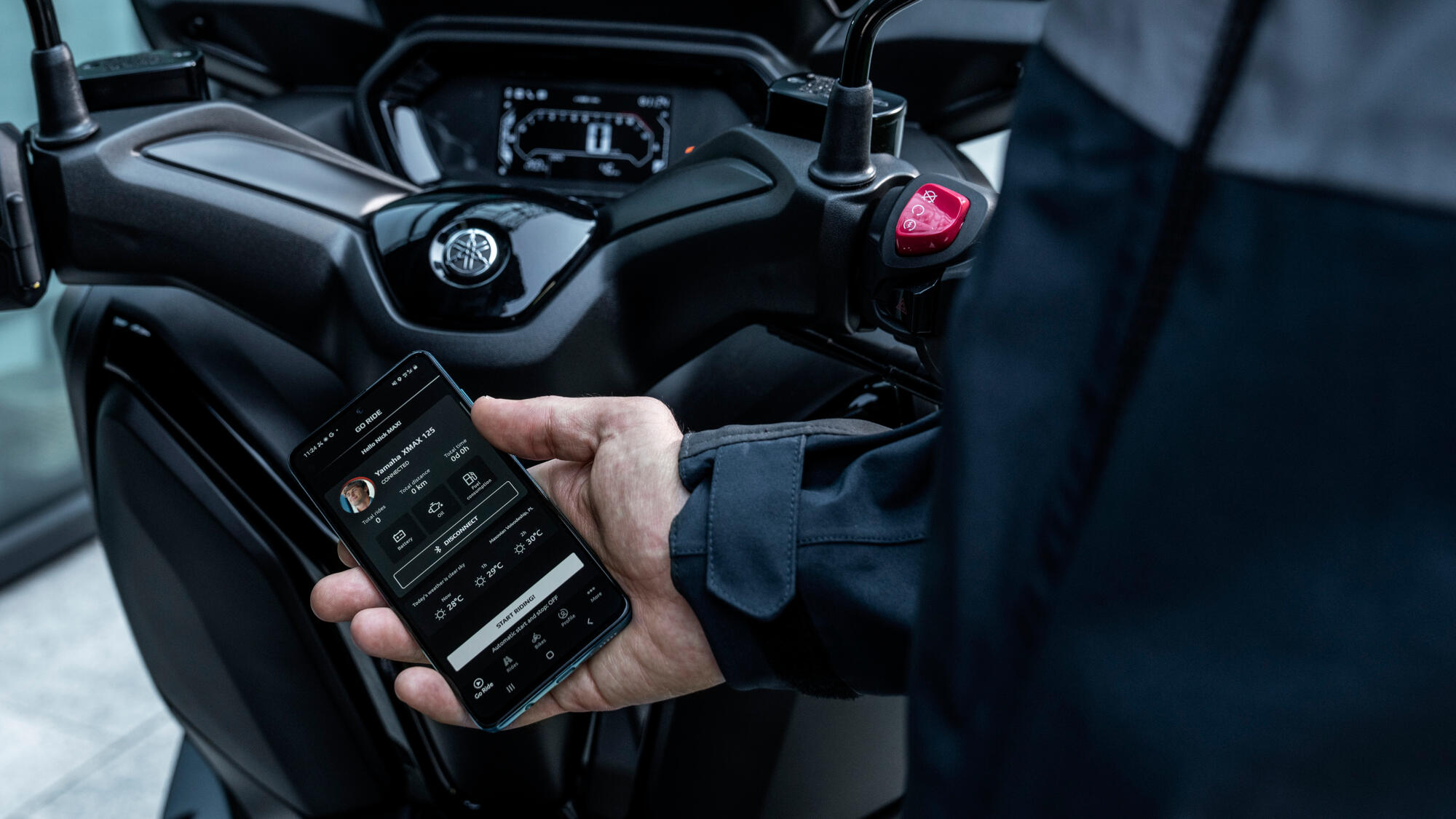 Připojení k zařízení XMAX 125 je snadné. Stačí si stáhnout bezplatnou aplikaci MyRide a spárovat svůj chytrý telefon s 4,3palcovým displejem LCD a můžete zobrazovat oznámení o hovorech, e-mailech a zprávách. Můžete také přistupovat k údajům o provozu stroje včetně průměrné spotřeby paliva, podrobností o jízdě, rychlosti, době jízdy, úhlu náklonu a dalším údajům.