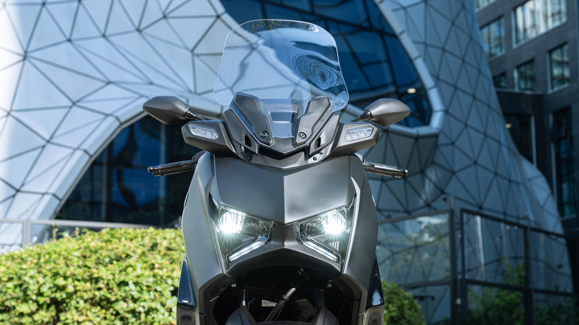 Pro vynikající viditelnost je XMAX 125 vybaven vysoko umístěnými předními směrovými světly, která jsou integrována do panelů kapotáže. Vzhledem k tomu, že jsou LED směrová světla umístěná takto vysoko, jsou dobře viditelná pro ostatní účastníky silničního provozu při průjezdu hustým provozem.