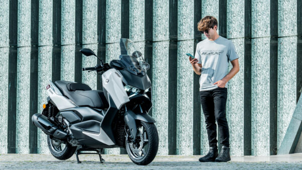 Při jízdě na XMAX 300 Tech MAX+ můžete snadno zůstat ve spojení s přáteli, rodinou a kolegy v práci prostřednictvím bezplatné aplikace MyRide. Váš chytrý telefon se přes Bluetooth spojí s vaším strojem, což kromě jiného umožňuje přijímat hovory a zprávy, poslouchat hudbu* a mít přístup k široké škále informací prostřednictvím 4,2palcového barevného displeje TFT. (* Odpovídání na hovory a poslech hudby vyžadují náhlavní soupravu připojenou přes Bluetooth®.)
